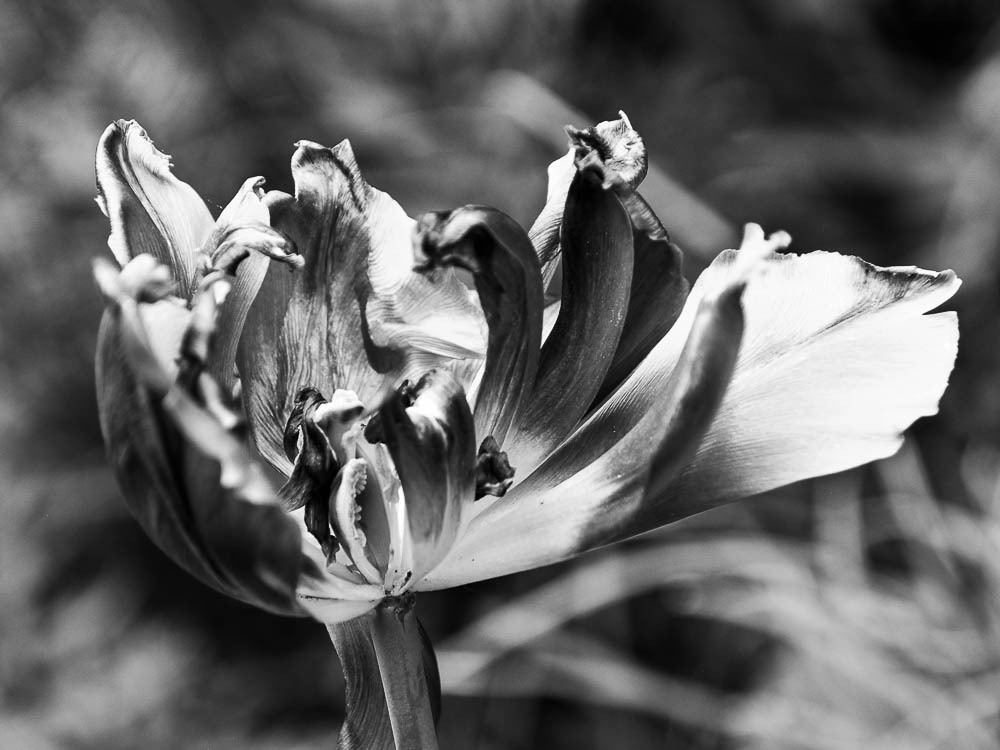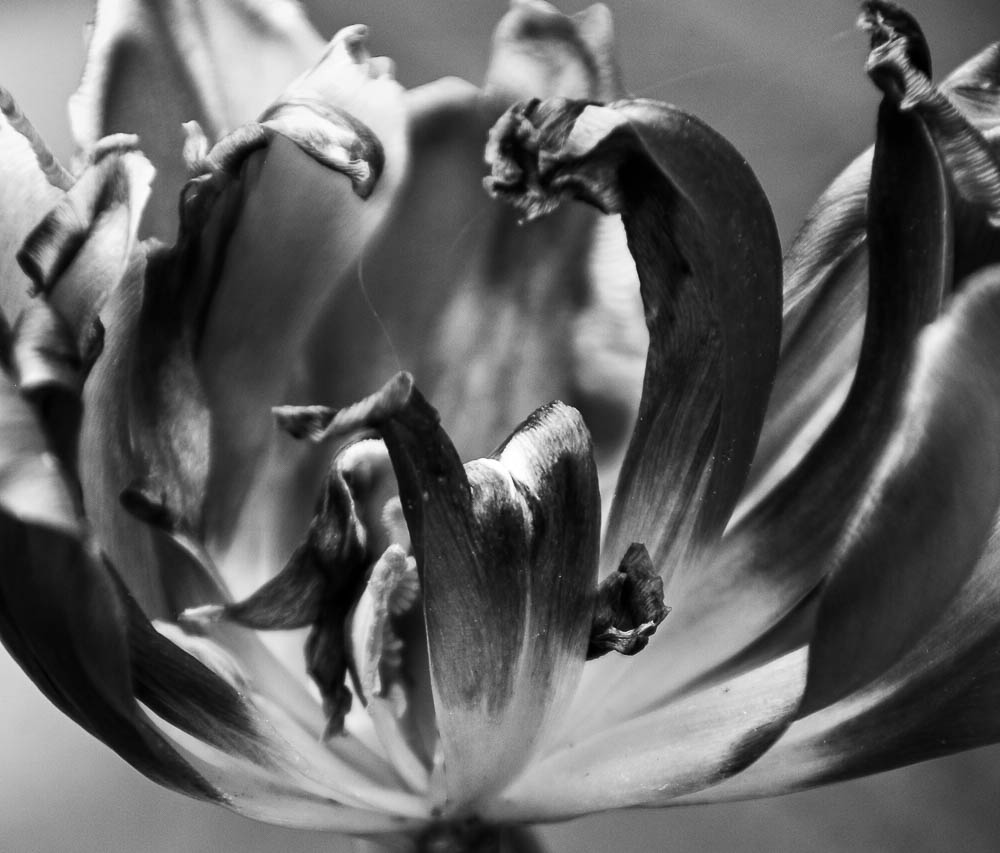 Here are some photographs capturing Tulips as their petals fade and fall. Here are black and white images where I capture the details of these flowers.